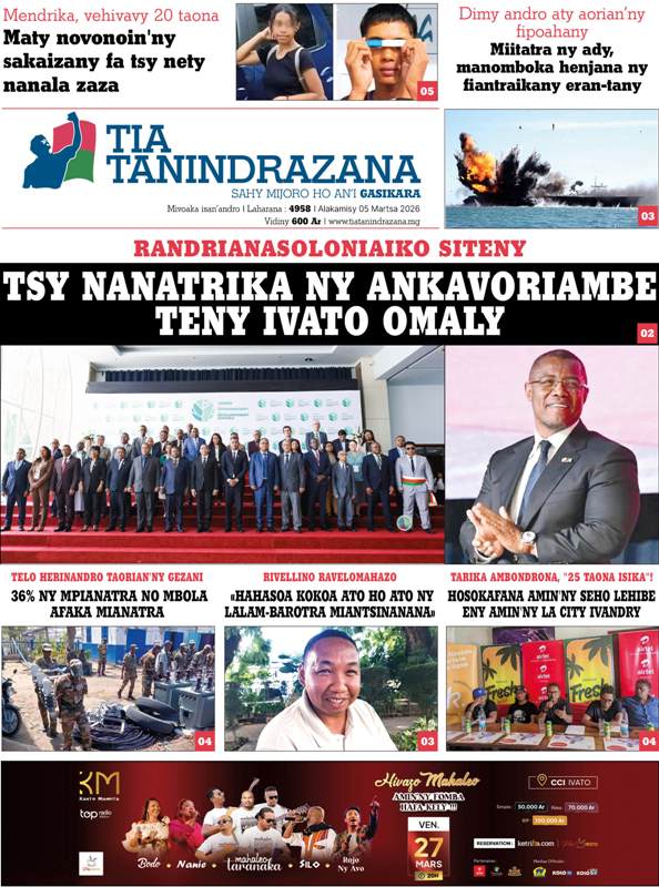 RN44 : Hisy fahatapahan-dalana ny zoma 08 janoary Noho ny asa fanamboarana ny lalana eo amin'ny PK151+500 Ankazotsaravolo, amin’ny lalam-pirenena faha-44 (RN44) mampitohy an'Ambatondrazaka sy Moramanga, dia ho tapaka ny fifamoivoizana eo amin'io lalana io ny zoma 08 janoary 2021 amin'ny 09 ora maraina ka hatramin'ny 05 ora hariva. Miantso ny mpampiasa lalana ny Minisiteran'ny Fanajariana ny tany sy ny Asa vaventy mba samy hanaiky sy hanaraka ireo toromarika izay omen'ireo tompon'andraikitra eny an-toerana.